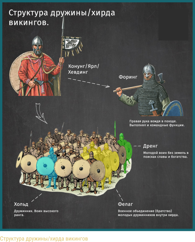 - Форинг — правая рука вождя хирда, выполнял командные функции;